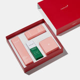 Glass Glow Special SET with a Gift Box (contains Glass Glow Essence, Glass Glow Serum, Triple Deep Erasing Cream, and Super Cica Ampoule). 40% OFF from 8/25.Soothe and Plump skin all at once!